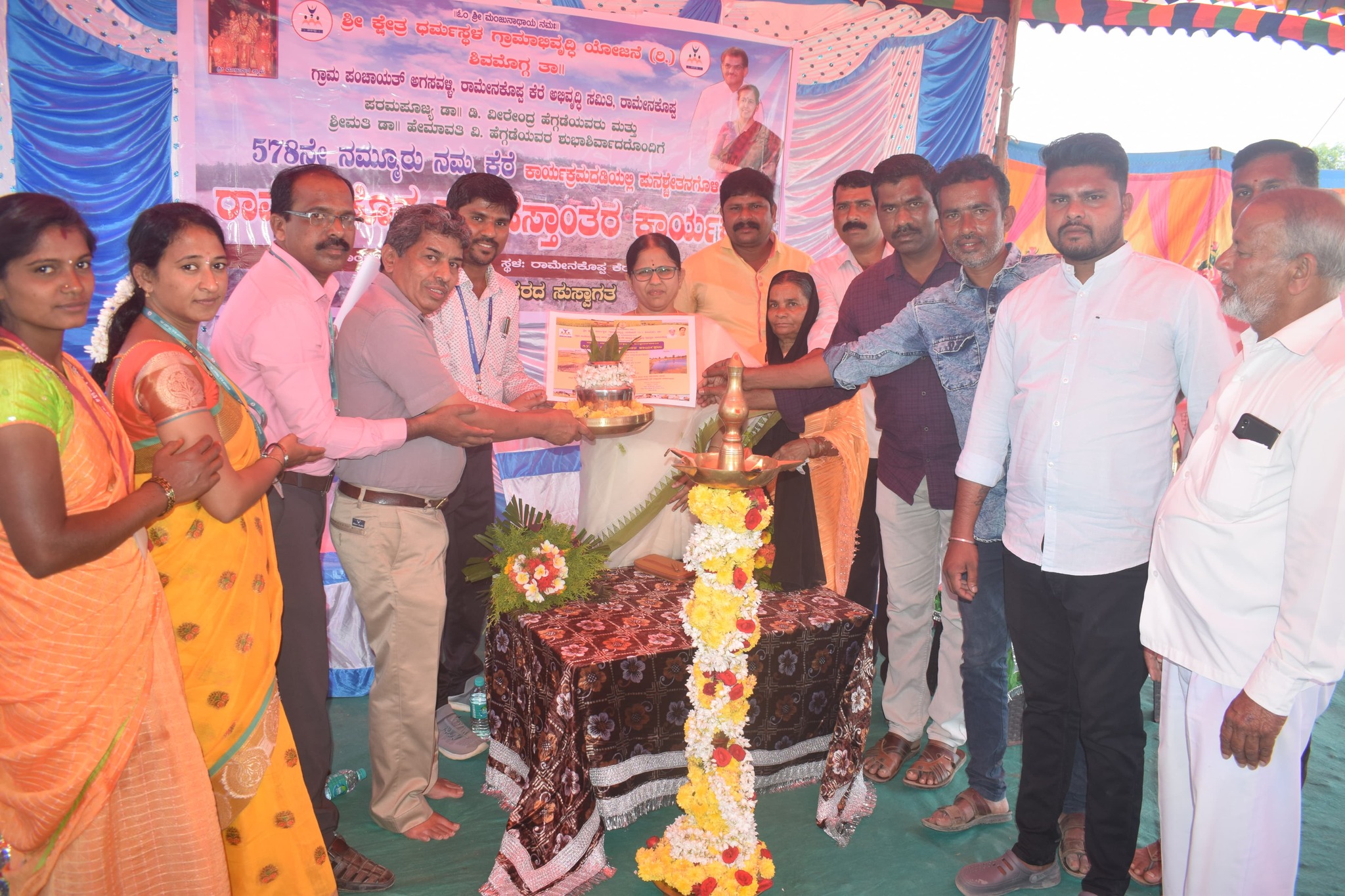 ಶ್ರೀ ಕ್ಷೇತ್ರ ಧರ್ಮಸ್ಥಳ ಗ್ರಾಮಾಭಿರುದ್ಧಿ ಯೋಜನೆ (ರಿ) ಇವರ ಅಡಿಯಲ್ಲಿ ಹಮ್ಮಿಕೊಂಡಿದ್ದ 578ನೇ ನಮ್ಮೂರ ನಮ್ಮ ಕೆರೆ ಕಾರ್ಯಕ್ರಮದಡಿ ಪುನಶ್ಚೇತನಗೊಳಿಸಿದ ಅಗಸವಳ್ಳಿ ಗ್ರಾಮಪಂಚಾಯಿತಿಯ ರಾಮೇನಕೊಪ್ಪ ಕೆರೆ ಅಭಿವೃದ್ಧಿ ಸಮಿತಿಯವರಿಗೆ ರಾಮೇನಕೊಪ್ಪ ಕೆರೆ ಹಸ್ತಾಂತ ಮಾಡುವ ಕಾರ್ಯಕ್ರಮದ ಉದ್ಘಾಟನೆಯಲ್ಲಿ ಭಾಗಿಯಾದ ಕ್ಷಣ.