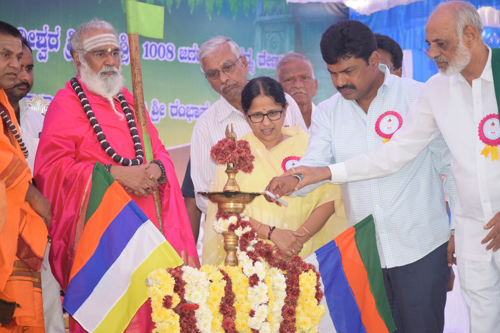 ಹೊಳೆಹೊನ್ನೂರಿನಲ್ಲಿ ಶ್ರೀ ಮದ್ ರಂಭಾಪುರಿ ವೀರಸಿಂಹಾಸನಾಧೀಶ್ವರ ಶ್ರೀ ಶ್ರೀ 1008 ಜಗದ್ಗುರು ಪ್ರಸನ್ನ ರೇಣುಕ ಡಾ. ವೀರಸೋಮೇಶ್ವರ ರಾಜದೇಶಿಕೇಂದ್ರ ಶಿವಾಚಾರ್ಯ ಭಾಗವತ್ಪದರು, ಬಾಳೆಹೊನ್ನೂರು ಇವರ 68ನೇ ಜನ್ಮ ದಿನೋತ್ಸವದ ಪ್ರಯುಕ್ತ ಆಯೋಜಿಸಿದ್ದ ಧಾರ್ಮಿಕ ಕಾರ್ಯಕ್ರಮವನ್ನು ಉದ್ಘಾಟಿಸಿ, ಗುರುಗಳ ಆಶೀರ್ವಾದ ಪಡೆದ ಕ್ಷಣ.