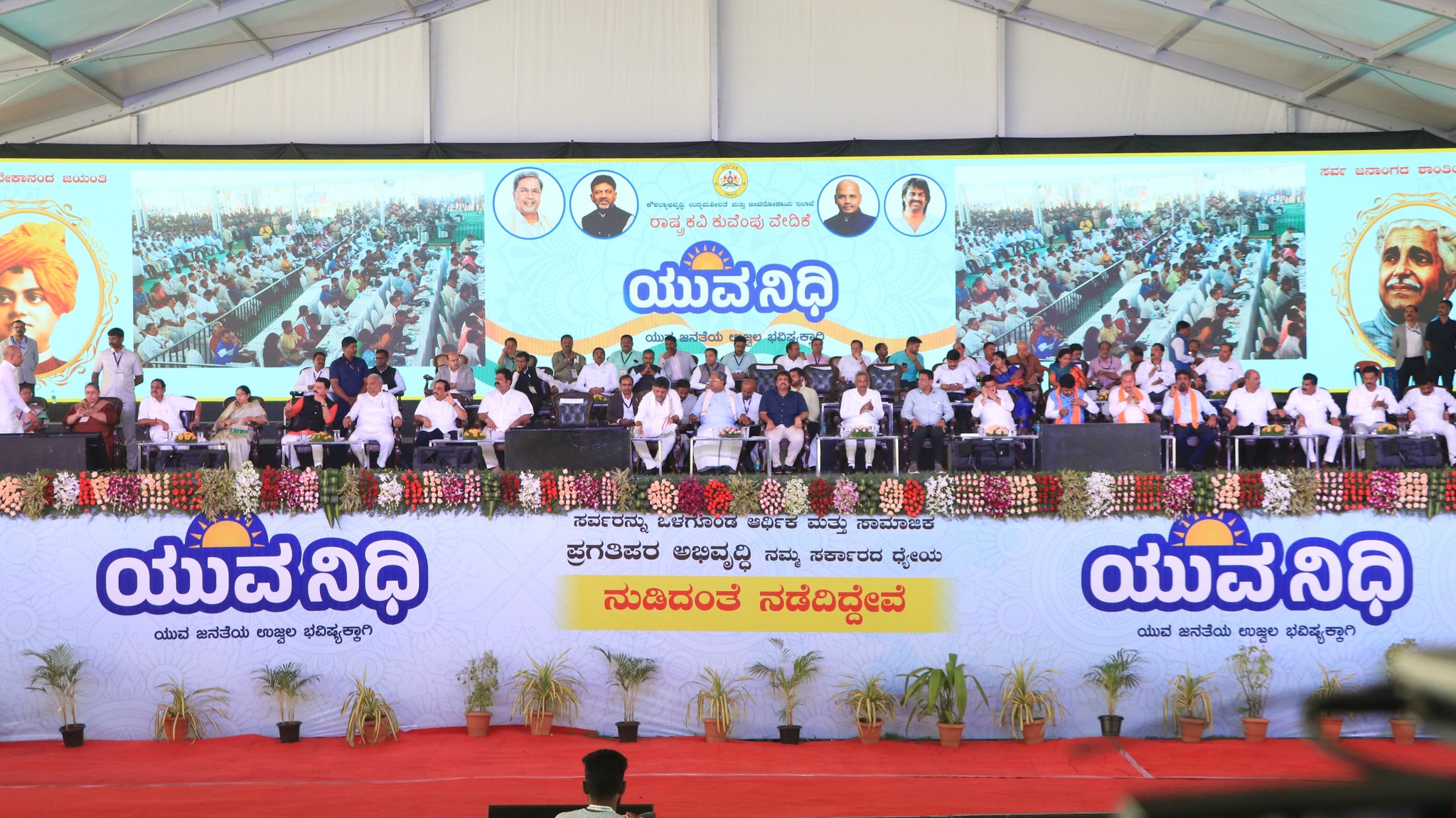 ಶಿವಮೊಗ್ಗದ ಫ್ರೀಡಂಪಾರ್ಕ್'ನಲ್ಲಿ ಇಂದು ಹಮ್ಮಿಕೊಂಡಿದ್ದ ರಾಷ್ಟ್ರೀಯ ಯುವ ದಿನ ಹಾಗೂ ಸ್ವಾಮಿ ವಿವೇಕಾನಂದ ಜಯಂತಿಯ ಅಂಗವಾಗಿ "ಯುವನಿಧಿ" ಫಲಾನುಭವಿಗಳಿಗೆ ನೇರ ನಗದು ವರ್ಗಾವಣೆ ಕಾರ್ಯಕ್ರಮದ ಉದ್ಘಾಟನಾ ಸಮಾರಂಭದಲ್ಲಿ ಭಾಗವಹಿಸಿದ ಕ್ಷಣ.