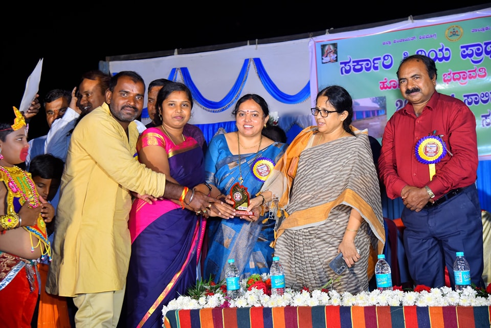 ಭದ್ರಾವತಿ ತಾಲೂಕಿನ ಸರ್ಕಾರಿ ಹಿರಿಯ ಪ್ರಾಥಮಿಕ ಶಾಲೆ ಹೊಸಕೊಪ್ಪ ಶಾಲೆಯ 2023-24 ನೇ ಸಾಲಿನ ಶಾಲಾ ವಾರ್ಷಿಕೋತ್ಸವ ಸಮಾರಂಭದ ಉದ್ಘಾಟನಾ ಸಮಾರಂಭದಲ್ಲಿ ಪಾಲ್ಗೊಂಡು ಶಾಲಾ ಮಕ್ಕಳಿಗೆ ಪ್ರಶಸ್ತಿ ಪ್ರದಾನ ಮಾಡಿದ ಸಂದರ್ಭ