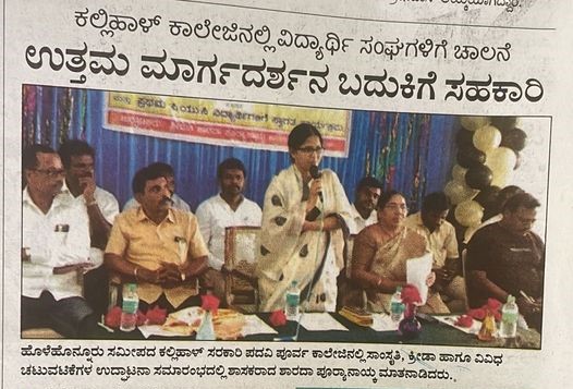 ಕುಂಸಿಯ ಸ್ವಾತಂತ್ರ ಪದವಿ ಪೂರ್ವ ಕಾಲೇಜಿನಲ್ಲಿ ಪಠ್ಯೇತರ ಚಟುವಟಿಕೆಗಳ ಉದ್ಘಾಟನ ಕಾರ್ಯಕ್ರಮಕ್ಕೆ ಚಾಲನೆ ನೀಡಿ, ವಿದ್ಯಾರ್ಥಿಗಳಿಗೆ ಸಲಹೆ ನೀಡಿದ ಸಂದರ್ಭ