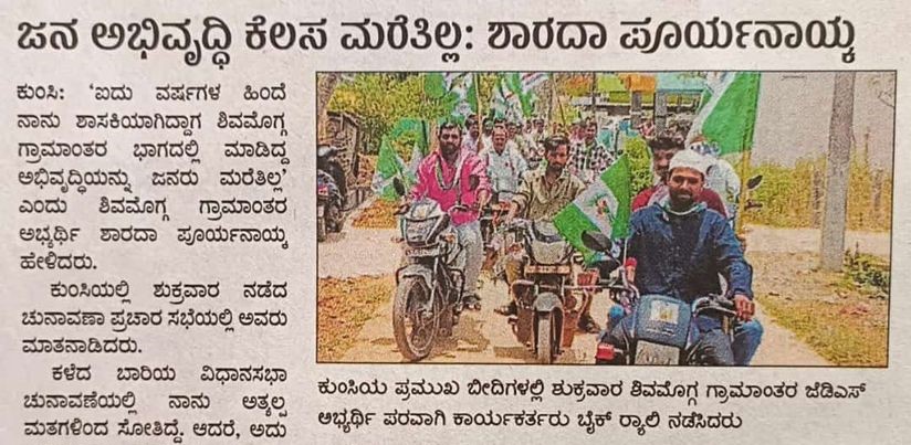 ಶಿವಮೊಗ್ಗ ಗ್ರಾಮಾಂತರ ಕ್ಷೇತ್ರದ ಹಸೂಡಿ ಕ್ಯಾಂಪ್, ಬಿದರೆ ಮತ್ತು ಹೊಳೆಹೊನ್ನೂರು ಸುತ್ತಮುತ್ತಲಿನ ಭಾಗದಲ್ಲಿ ಜೆಡಿಎಸ್ ಚುನಾವಣಾ ಪ್ರಚಾರ. ಈ ಸಂದರ್ಭದಲ್ಲಿ ಭಾಗವಹಿಸಿದ್ದ ನನ್ನ ಕ್ಷೇತ್ರದ ಮತ ಬಾಂಧವರಿಗೆ ಗ್ರಾಮಸ್ಥರು, ಜೆಡಿಎಸ್ ಕಾರ್ಯಕರ್ತರು, ಮುಖಂಡರಿಗೆ, ಅಭಿಮಾನಿಗಳಿಗೆ ಹೃದಯಪೂರ್ವಕ ಧನ್ಯವಾದಗಳು.