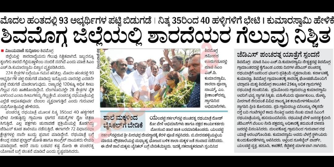 ಶಿವಮೊಗ್ಗ ಗ್ರಾಮಾಂತರ ಕ್ಷೇತ್ರದ ತಟ್ಟೆಹಳ್ಳಿಯಲ್ಲಿ, ನಮ್ಮ ಜೆಡಿಎಸ್ ನ ಯುವಪಡೆ ಟೀ ಶರ್ಟ್ ಧರಿಸಿ, ಚುನಾವಣಾ ಪ್ರಚಾರಕ್ಕೆ ಸಜ್ಜಾಗಿರುವ ದೃಶ್ಯ.
